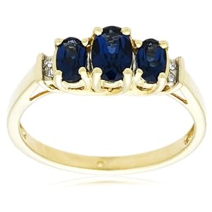 10k Yellow Gold September Birthstone 3-Stone Created Sapphire with Diamond-Accent Ring, Size 7